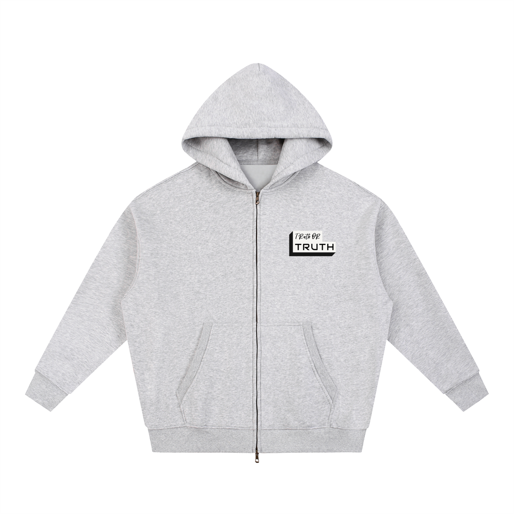 TruthorTruth Washed Boxy Zip-up Fleece Hoodie